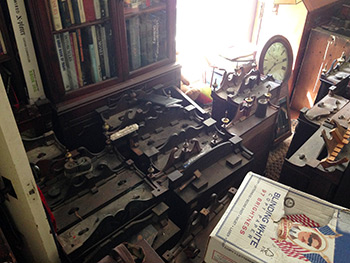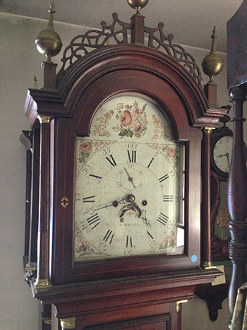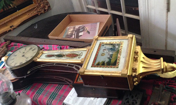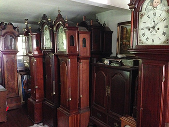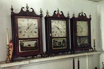 There are numerous American and English bracket clocks, mantel clocks, wall clocks and desk clocks. More will likely be uncovered as we begin working on site.