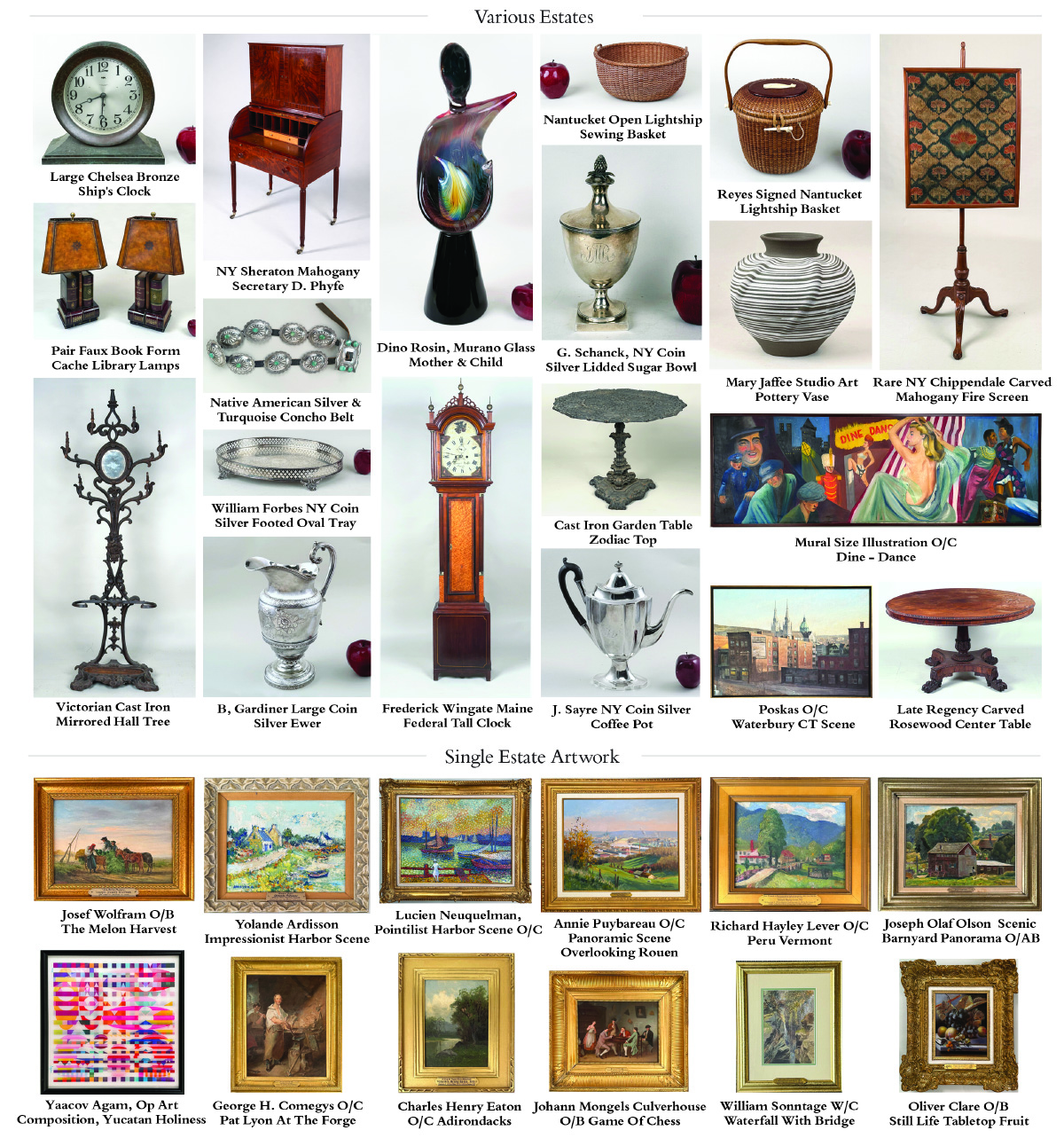 Our February Fine Estates Auction features a wonderful group of American coin and sterling silver items from a Connecticut estate; a rare NY Chippendale carved mahogany fire screen with Dutchess County NY provenance; and over 400 lots of fine art from a New Jersey estate.We are still accepting consignments through Friday, January 23rd.