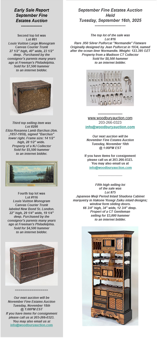 As we enter our second decade of excellence in service to estates, collectors, institutions and the antiques and decorative arts community, we are pleased to share with you the Antiques & Arts Weekly recently published report on our Tenth Anniversary Fine Estates Auction held on May 22, 2019.